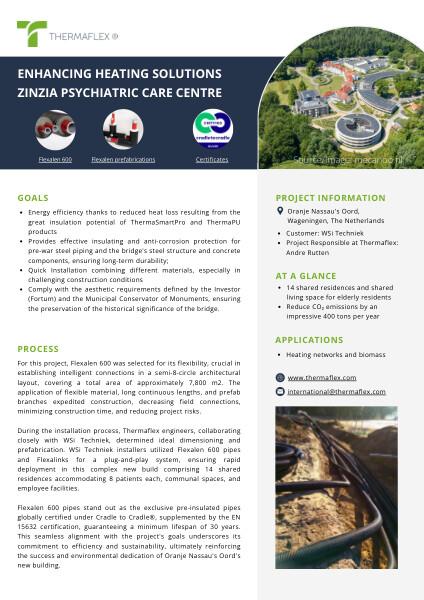 En 2020, Thermaflex y WSi Techniek implantaron Flexalen 600 en Oord de Oranje Nassau, Wageningen, Países Bajos, mejorando la eficiencia de la calefacción y reduciendo las emisiones de CO₂ en 400 toneladas anuales.