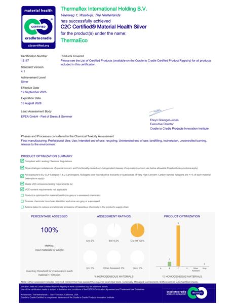 Certificat C2C – Santé des matériaux Argent – ThermaECO (EN)